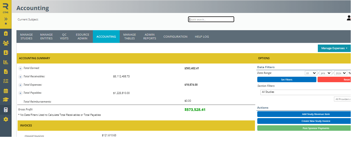 - Reliably handling budgets, negotiations, CTMS template building, invoicing, and payment reconciliation.